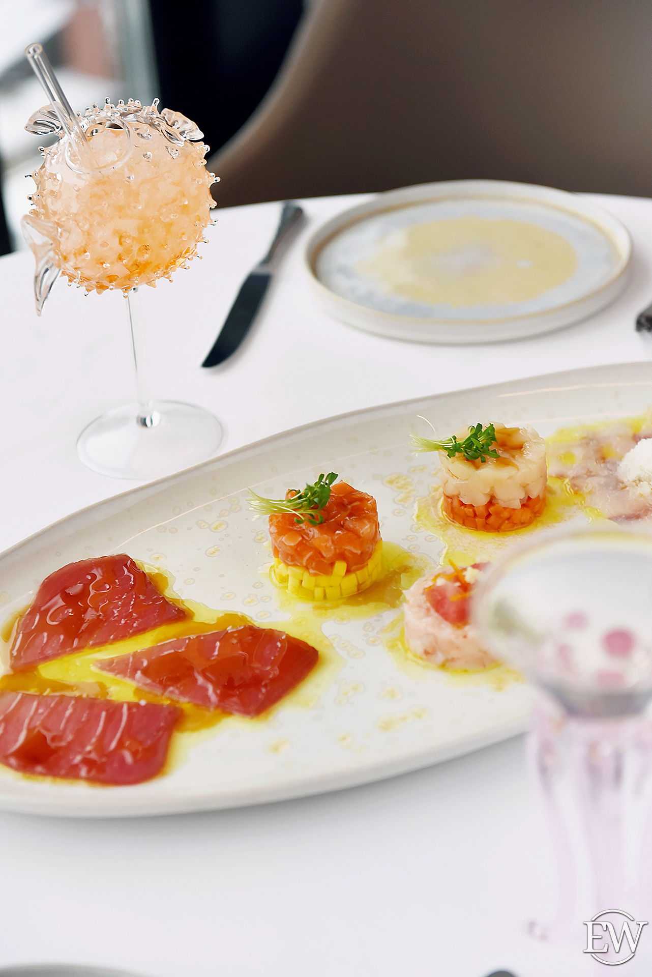 «На пике морепродукты и рыба дикого вылова максимальной свежести. Чистый продукт, не искаженный термообработкой и яркими соусами.