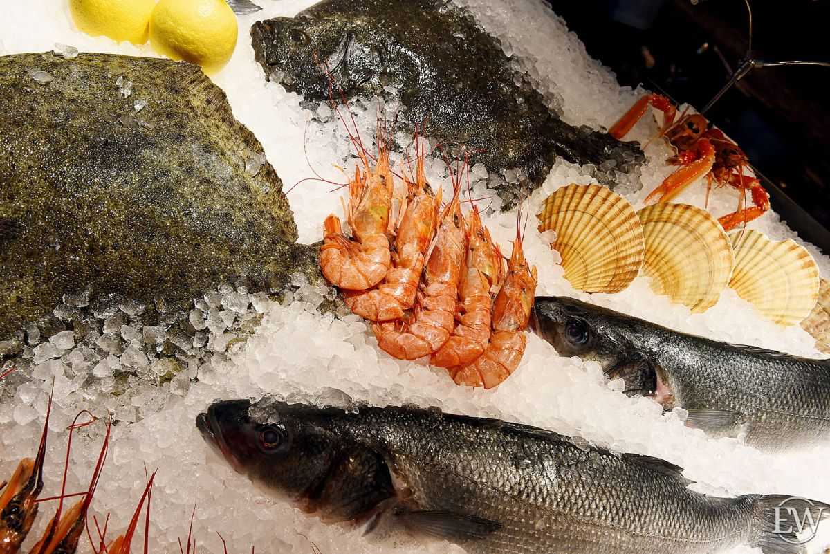 У нас целый ряд российских морепродуктов: мурманские морские ежи и гребешки, сахалинский трубач, северная и гребенчатая креветка. Есть и рыба из Средиземноморья (сейчас в основном Марокко и Тунис), а также из Японии.