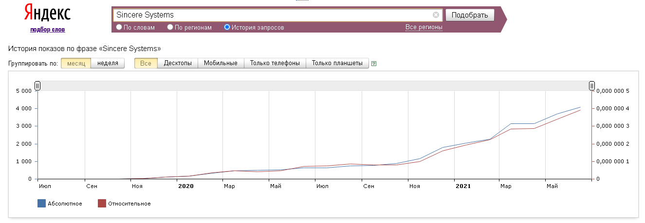 Плавное развитие S-Group. Это одна из главных причин по которой компания выглядит интересно в ближайшем будущем. Популярность растёт плавно, это видно, например, по количеству запросов в Яндексе.