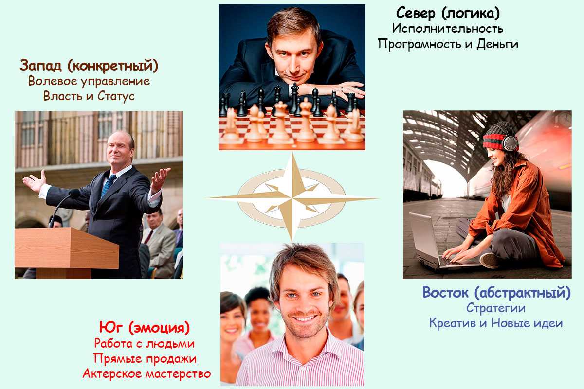 В Эниостиле есть четкие критерии разделения личности на Север, Юг, Запад и Восток. Здесь трудно ошибиться. Четкость критериев и позволяет выявить стереотипы поведенческих реакций людей.