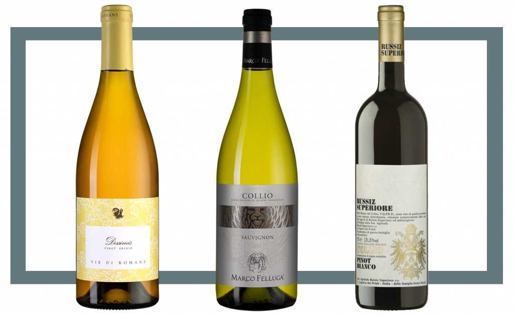 Слева направо: Vie di Romans Dessimis Pinot Grigio Friuli Isonzo DOC 2019; Marco Felluga Collio Sauvignon Blanc Collio DOC 2018; Russiz Superiore Collio Pinot Bianco Collio DOC 2020