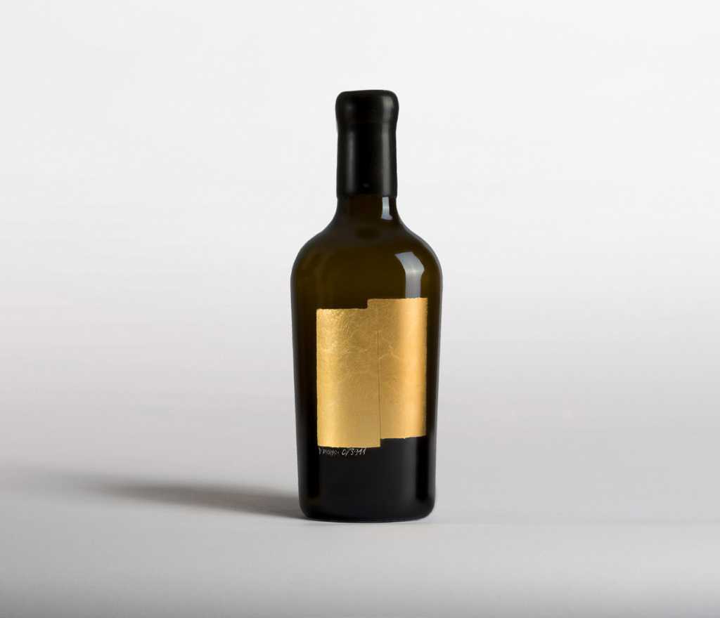 Дизайн бутылки посвящен прошлому Венеции и отдает дань уважения трем культовым местным традициям: виноградарству, изготовлению украшений из золота (сусальные мастерские, позолота) и работе со стеклом. Каждая бутылка уникальна: выдувается вручную на знаменитом острове Мурано, также вручную на нее накладывается сусальное золото, она запекается в стекловаренной печи, а затем нумеруется. В год производится всего 3500 бутылок. Каждый винтаж со своей композицией из сусального золота. Раритетная вещь.
