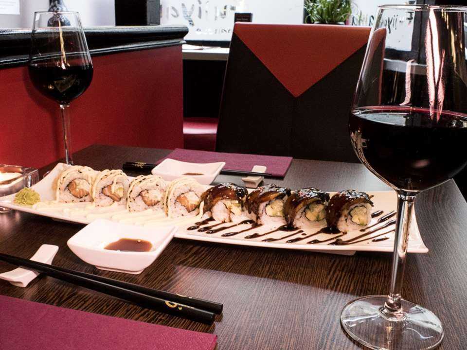 А подают ли вино к роллам? Конечно! Это особое сливовое вино, не приторное, очень вкусное и легкое. Оно чудесно подчеркивает вкус маленьких японских рулетиков, полностью с ними гармонируя.