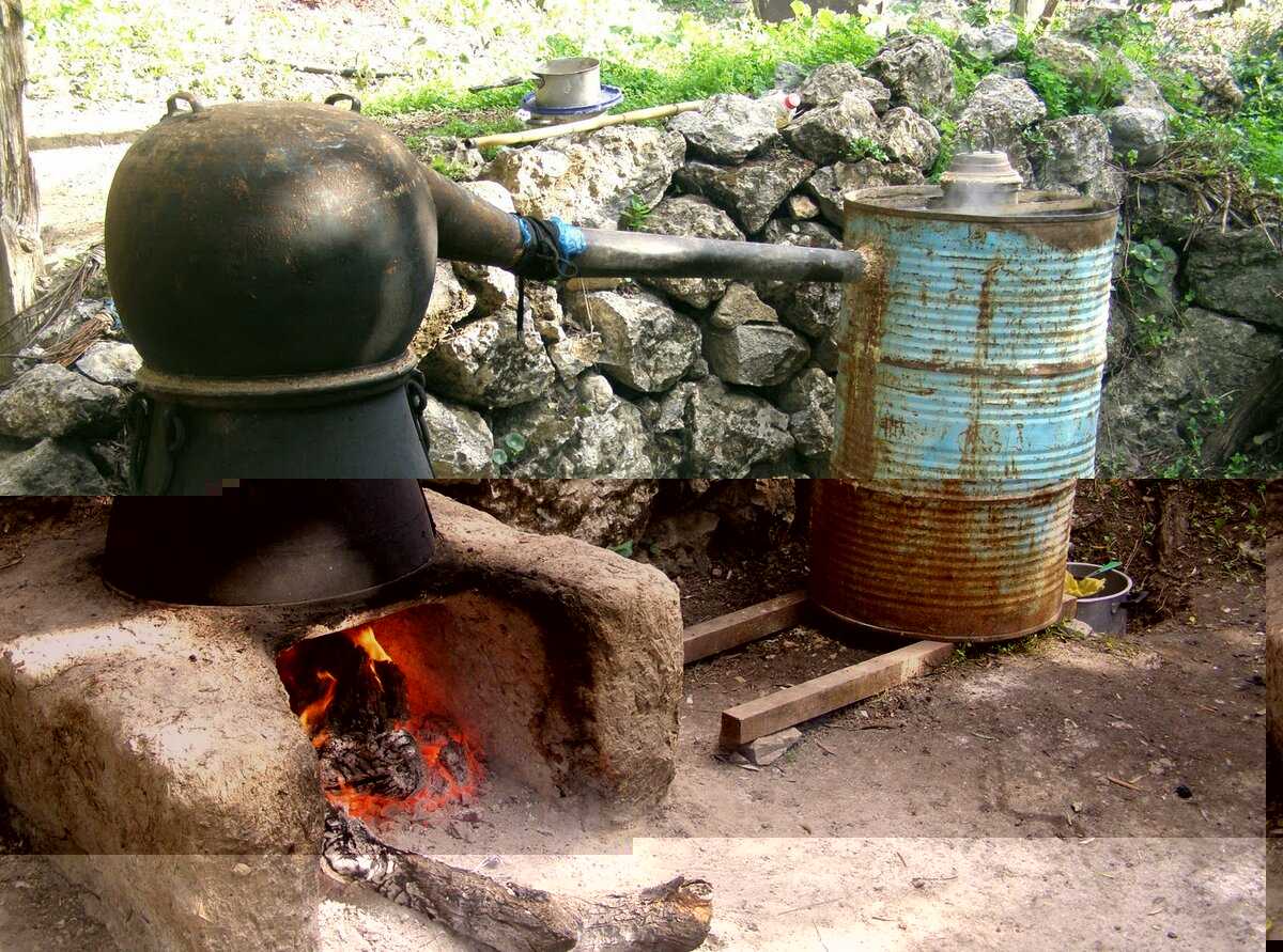 Кипрский самогонный аппарат называется “ламбикос”, в деревнях обычно держат всего один ламбикос для нужд всех жителей деревни. Брожение массы из жмыха и вина происходит в больших глиняных контейнерах, они называются “пифос”.