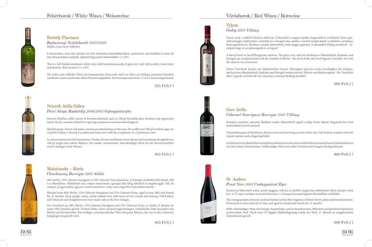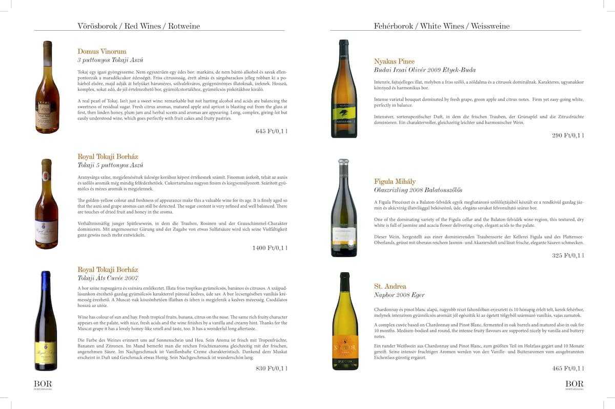 Когда-то здесь располагались помещения монастыря доминиканцев. В уютном зале имеется всего лишь пять деревянных столиков. Для дегустации гостям предлагается несколько позиций из 4-9 разновидностей лучших вин Венгрии, доставляемых из 22 регионов республики. Порция напитка – 50-75 миллилитров.