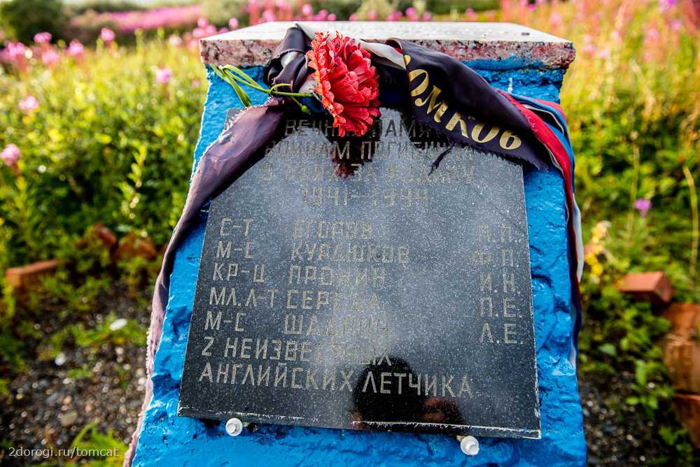 Братская могила на берегу Вайда-губы. Здесь похоронены те, кто погиб в районе поселка Вайда в годы Великой Отечественной. Чуть дальше — древнее кладбище саамов.